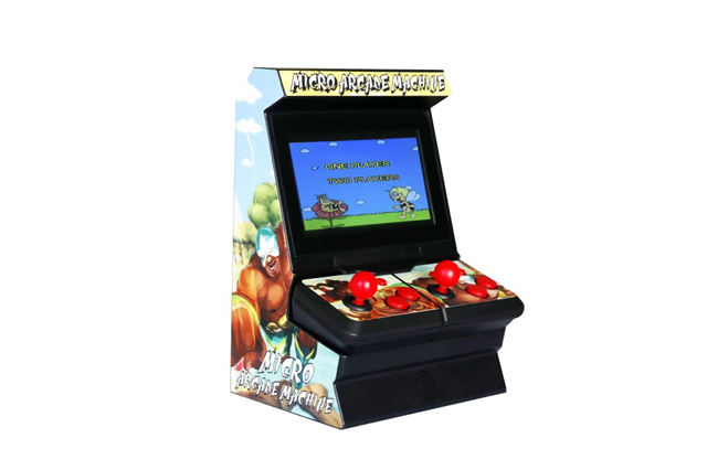 Micro Arcade Game Machine, pretty & petite pocket game console. 4.3inch screen, Built-in 100 games. Use AA*3 batteries, support up to 3-4 hours playing. NO AV out function. Good for promotion with nice packaging.